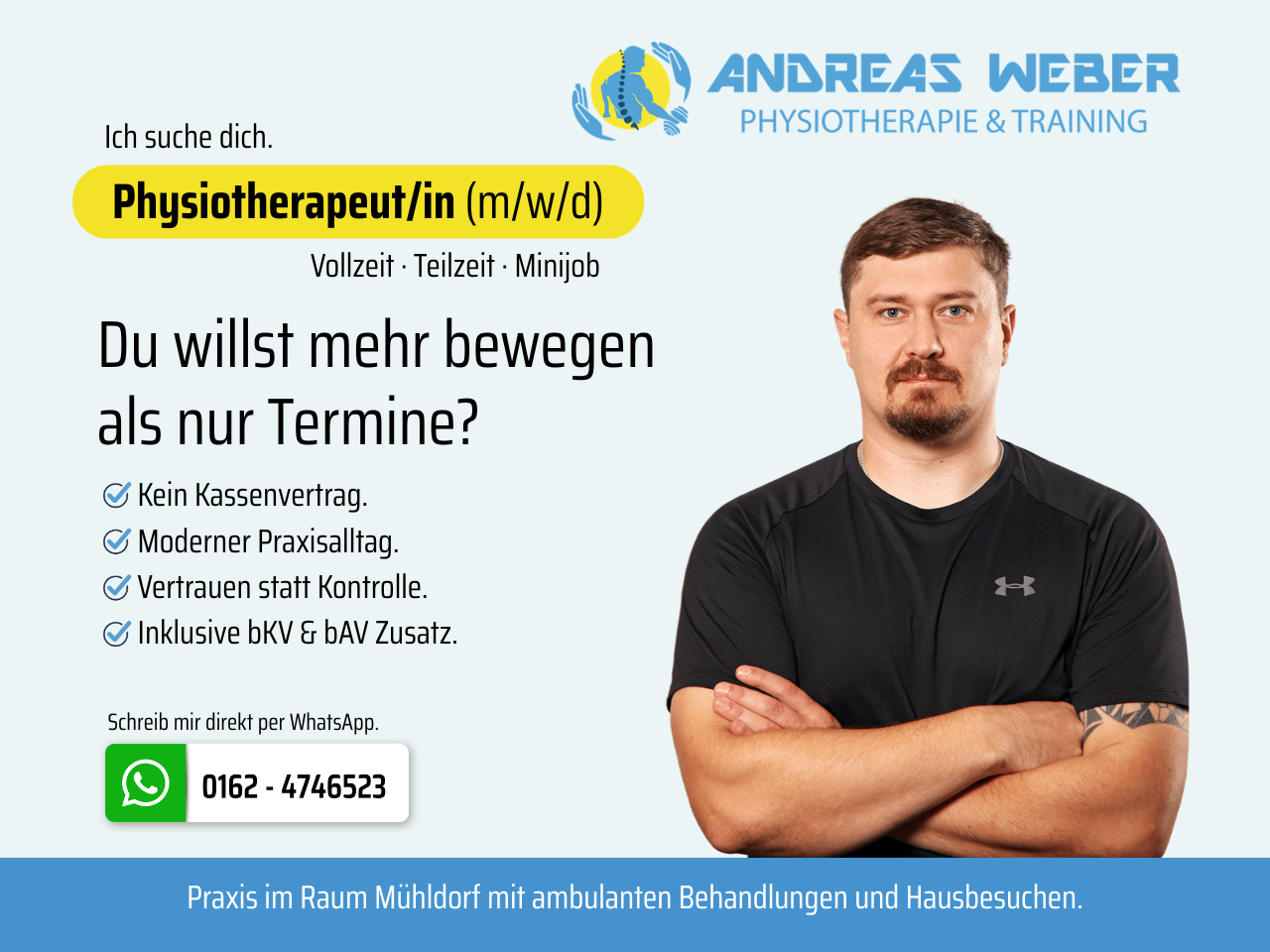 Solltest du vorab Fragen hast, kannst du dich auch gern per WhatsApp bei mir melden: 0162 4746523
